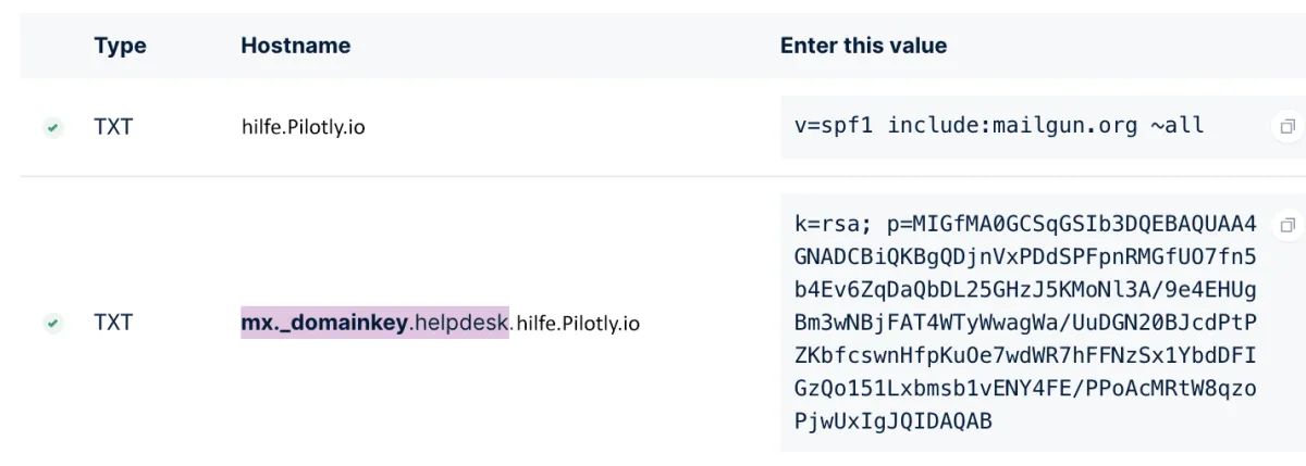 Sobald Sie alle DNS-Einträge hinzugefügt und überprüft haben, können Sie den Mailgun API-Schlüssel abrufen - Wo finden Sie ihn in Mailgun & wie Sie ihn in Pilotly.io einsetzen.
