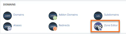Suchen Sie den Bereich Domains und klicken Sie dann auf Zonen-Editor