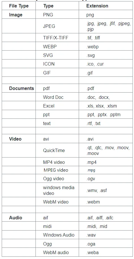 Wenn es um Medien innerhalb des Systems geht, ist es wichtig zu wissen, welche Medientypen und Formate unterstützt werden. Hier ist die Liste der Medien, nach Funktion aufgeschlüsselt.