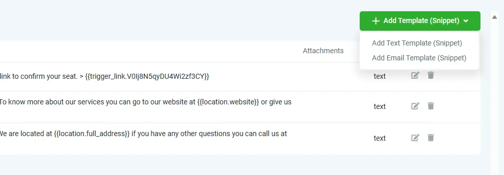 2. Klicken Sie auf die Schaltfläche Vorlage hinzufügen (Snippet) und wählen Sie Textvorlage hinzufügen (Snippet)
