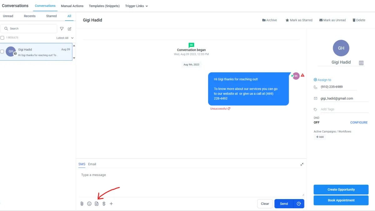 1. In Gesprächen, beim Senden einer SMS-Nachricht, klicken Sie auf das Symbol „Schnipsel einfügen“.