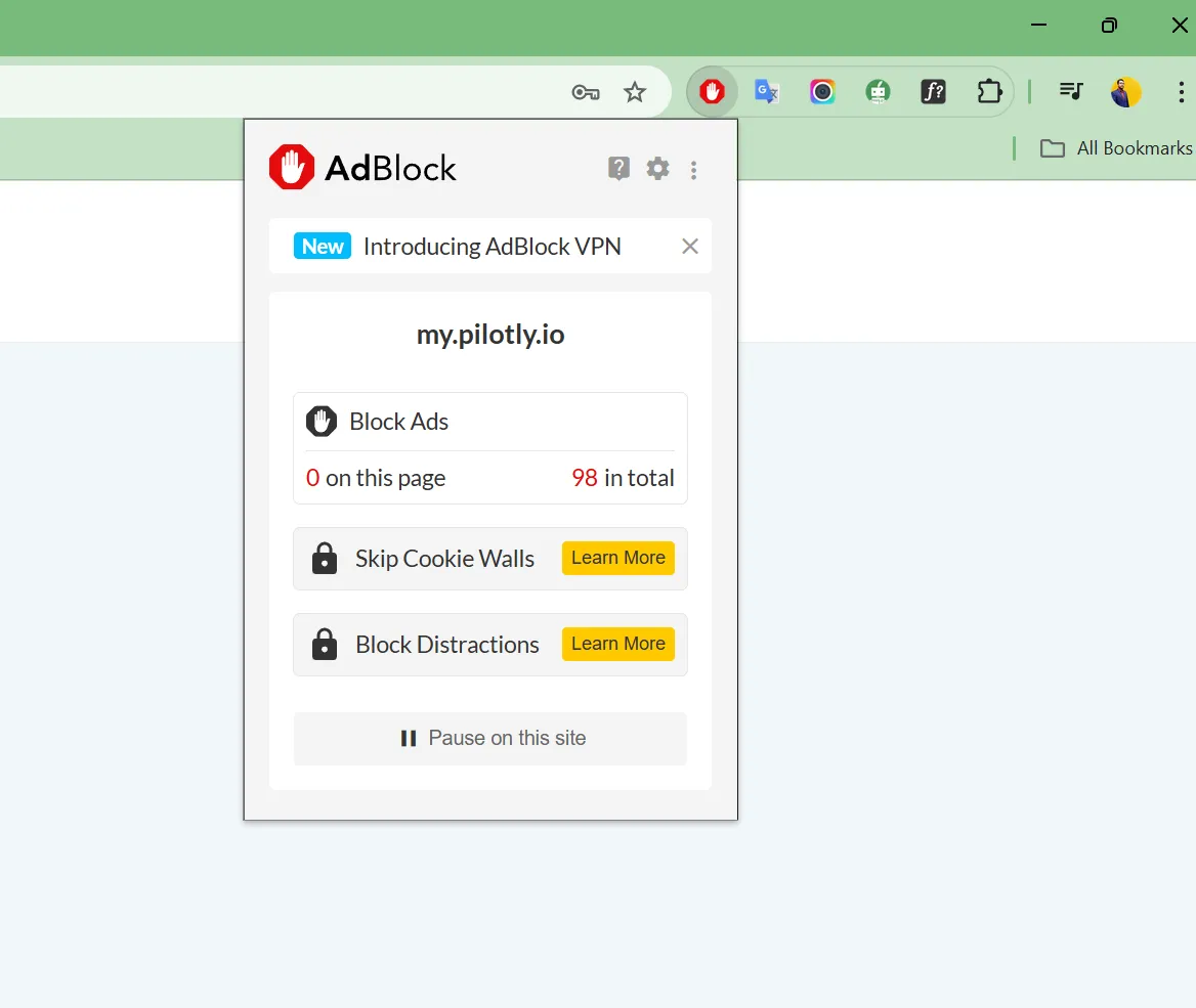 Klicken Sie auf das Ad-Blocker-Symbol in Ihrer Browser-Leiste (z. B. uBlock Origin, AdBlock Plus).