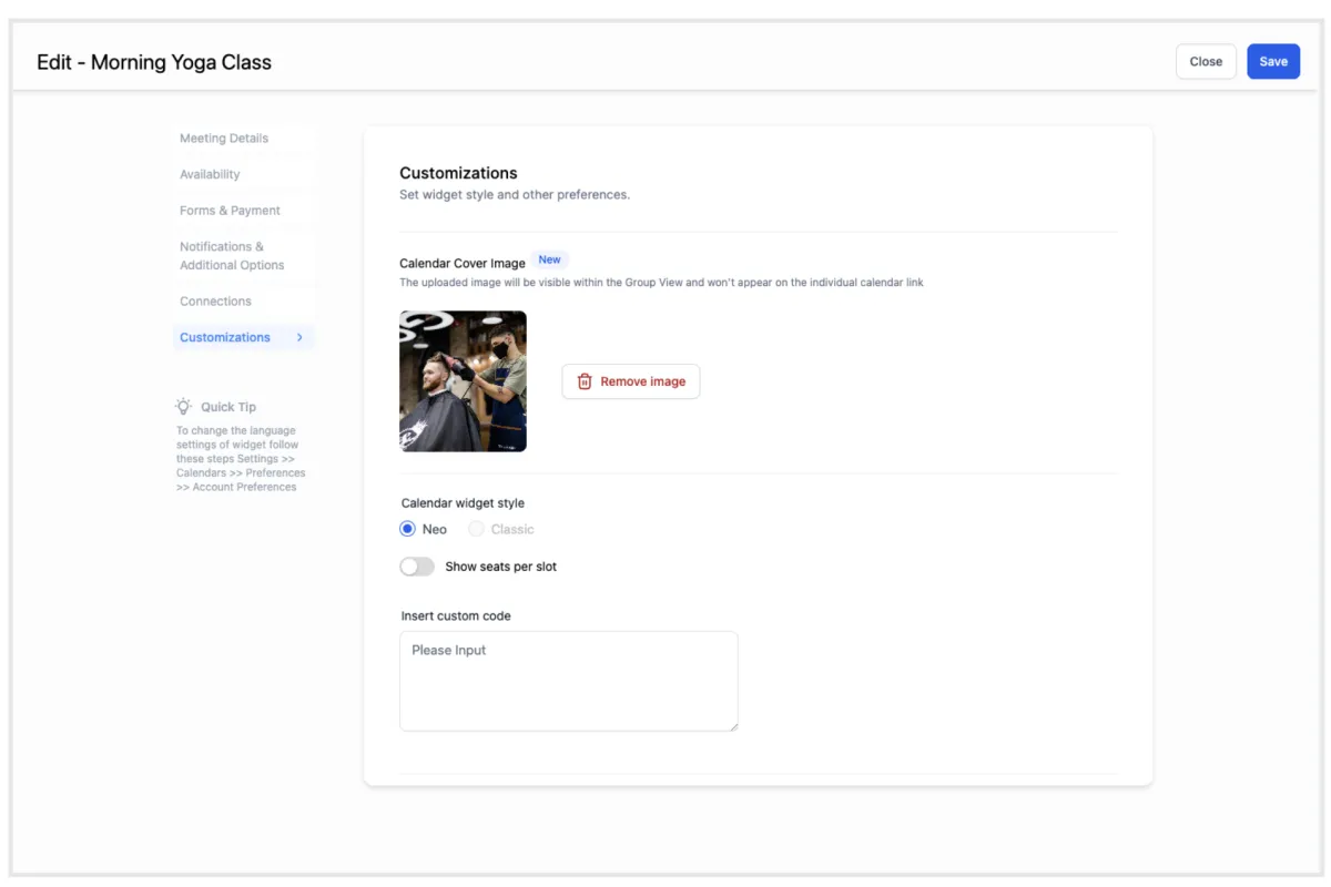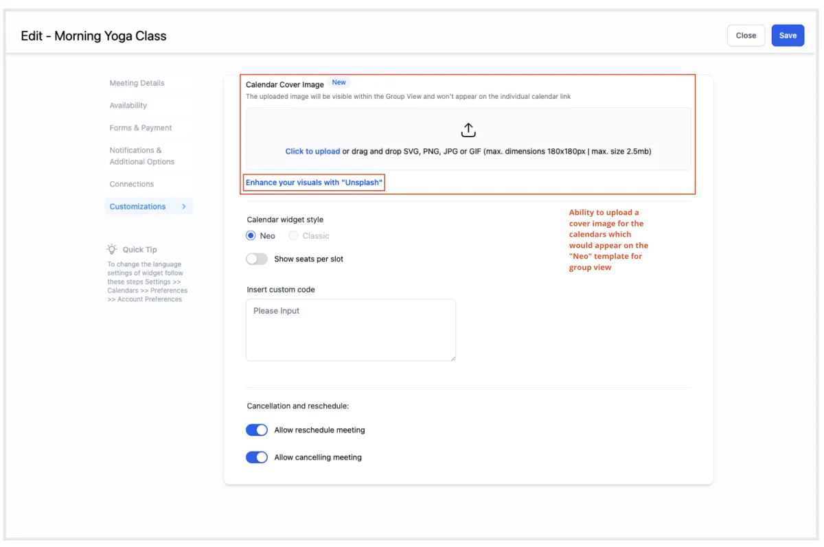 Innerhalb des "Anpassung" -Tabs sollten Sie eine Option zum Hochladen eines Kalender-Titelbilds finden.