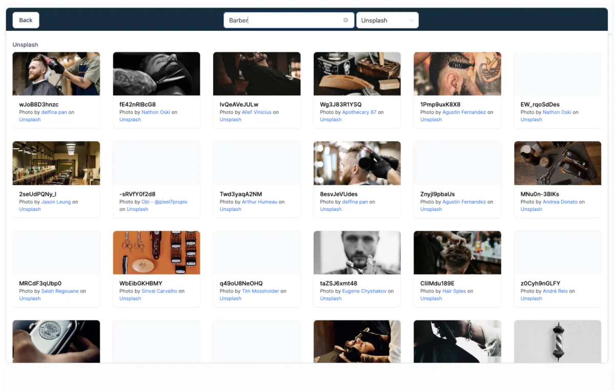 Je nach Ihrer Auswahl im vorherigen Schritt durchsuchen und wählen Sie entweder ein Bild von Ihrem Gerät aus oder suchen Sie auf Unsplash danach.
