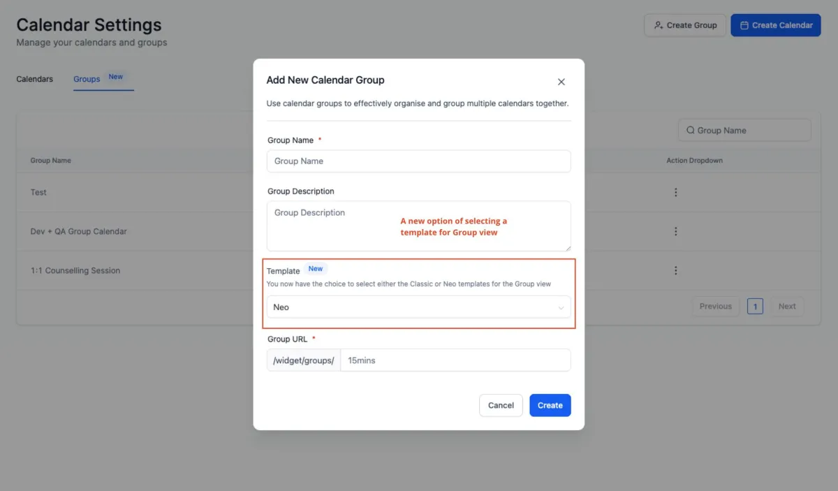 Antwort: Um eine Gruppe mit der Neo-Vorlage zu erstellen, befolgen Sie diese Schritte: Greifen Sie auf die Kalendereinstellungen zu, wählen Sie Gruppen, klicken Sie auf "Gruppe erstellen," wählen Sie die "Neo" Vorlage, füllen Sie die Gruppendetails aus und klicken Sie auf "Erstellen."