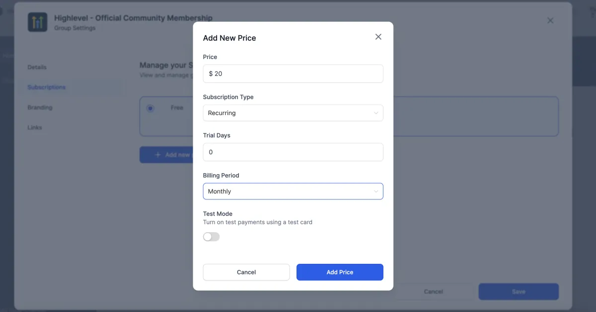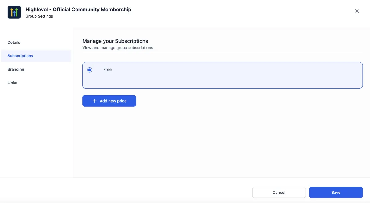 3. Klicken Sie auf "Hinzufügen" und dann auf "Speichern", um die bezahlte Gruppe mit wiederkehrendem Abonnement zu erstellen