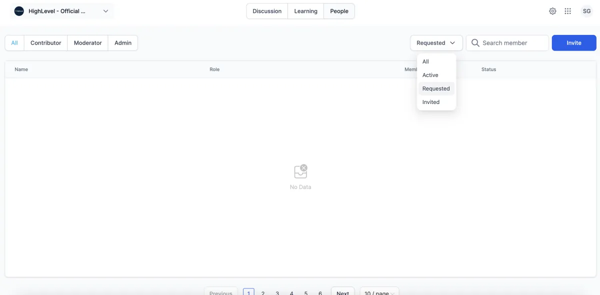 >Nachdem die Zahlung erfolgt ist, müssen Administratoren und Eigentümer denselben Prozess befolgen, um Mitgliedern Zugang zu privaten Gruppen zu gewähren (Gehe zum Personen-Tab > Klicke auf den Filter > Angefragt > Mitgliedschaft Akzeptieren oder Ablehnen)