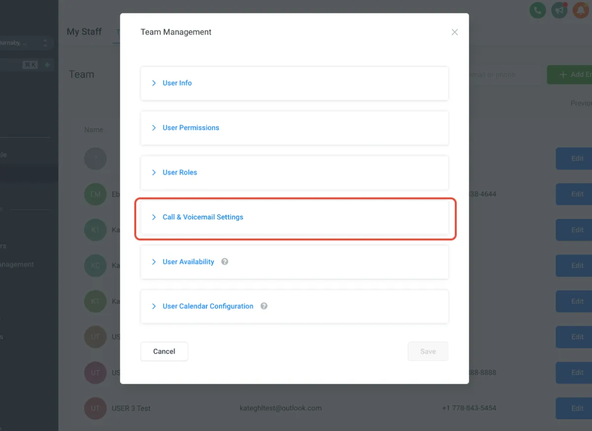 3. Erweitern Sie Anruf- und Voicemail-Einstellungen