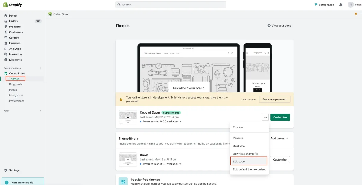 >Navigieren Sie zum Abschnitt "Online-Shop": Navigieren Sie von Ihrem Shopify-Dashboard zum Abschnitt "Online-Shop".