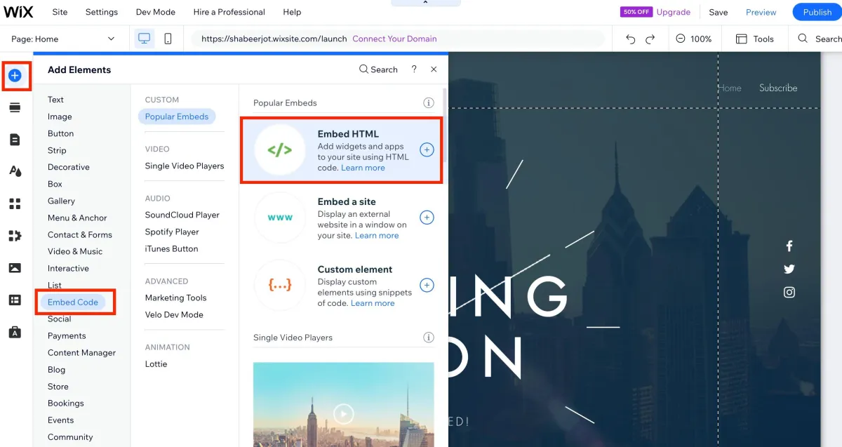 >Wählen Sie unter "Beliebte Einbettungen" die Option "HTML einbetten".