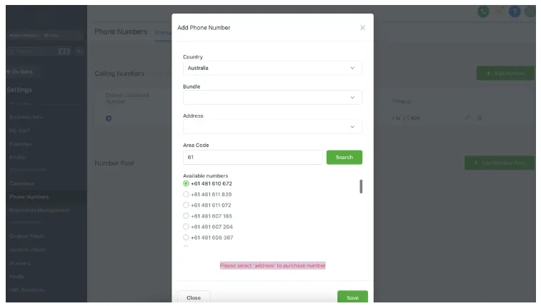 Wenn Sie eine Telefonnummer für Länder wie Australien kaufen, könnten Sie auf diesen Fehler stoßen: Bitte wählen Sie "Adresse" aus, um eine Nummer zu erwerben.