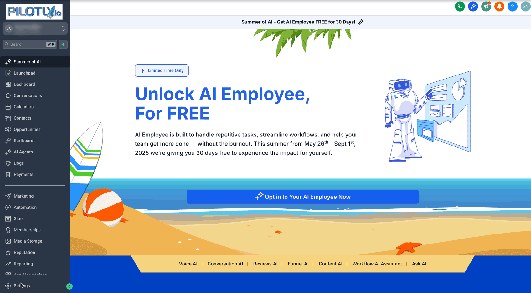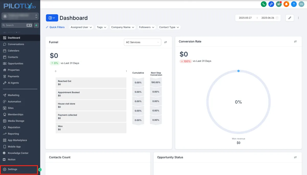 Navigieren Sie im Dashboard Ihrer pilotly.io Agency zum gewünschten Unterkonto .