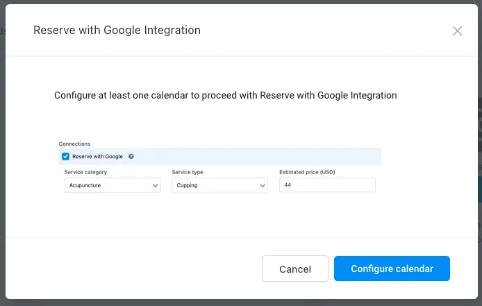 1. Gehen Sie in Ihrem Konto zu Einstellungen > Integrationen und klicken Sie unter "Mit Google reservieren" auf "Verbinden"