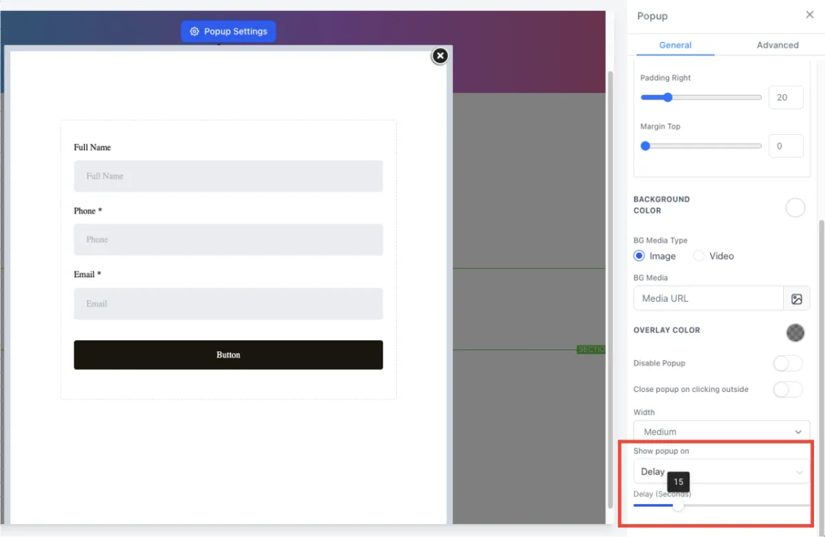 Hinweis: Der Timeout wird automatisch abgebrochen, wenn das Popup bereits vor der festgelegten Verzögerung geöffnet wurde.