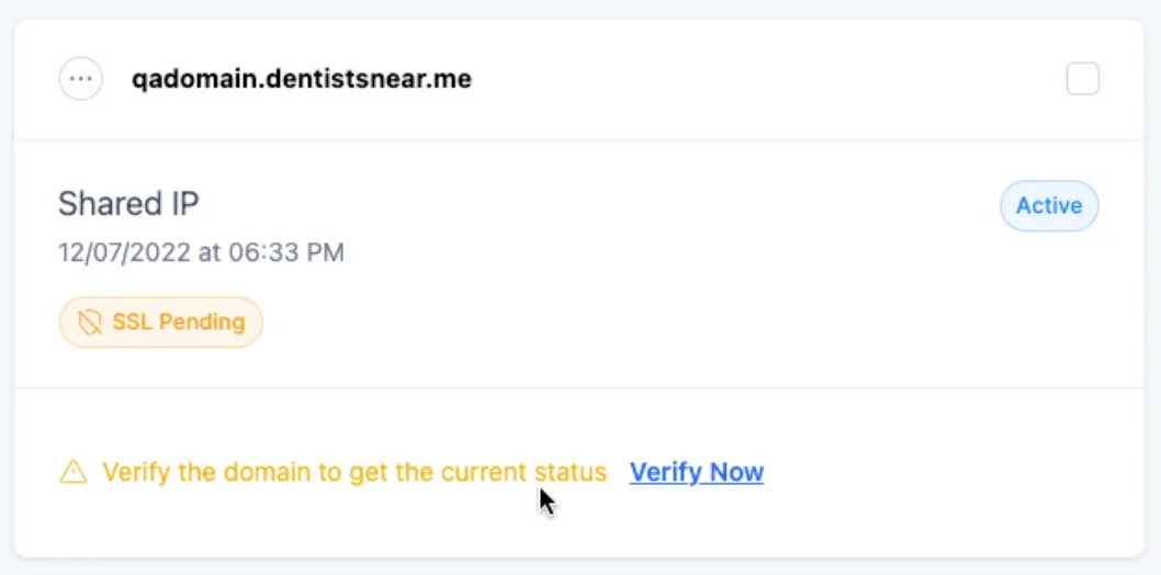 SSL ausstehend: Überprüfen Sie die Domäne erneut, indem Sie die oben genannten Schritte ausführen. Dadurch wird sichergestellt, dass das SSL-Zertifikat erfolgreich generiert wird.