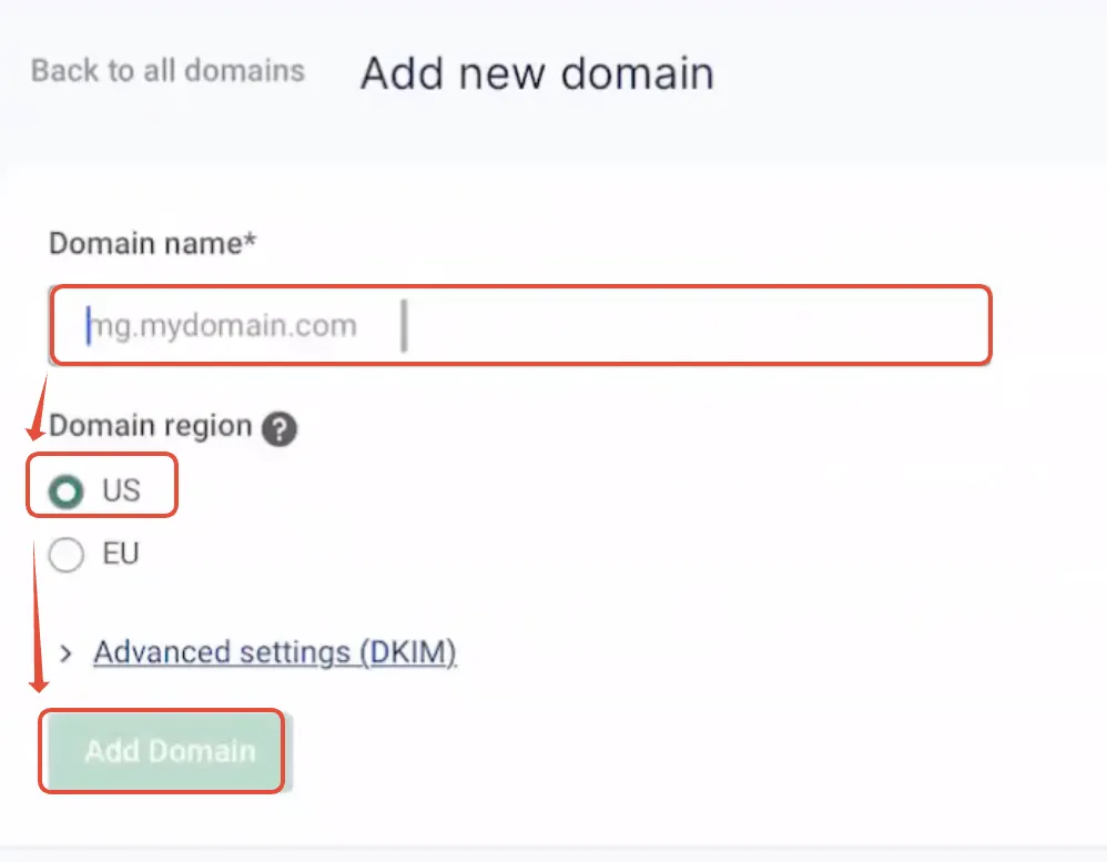4. Wenn Ihre Domain companyname.com lautet, können Sie entweder die Hauptdomäne oder die Subdomäne mit Mailgun einrichten.