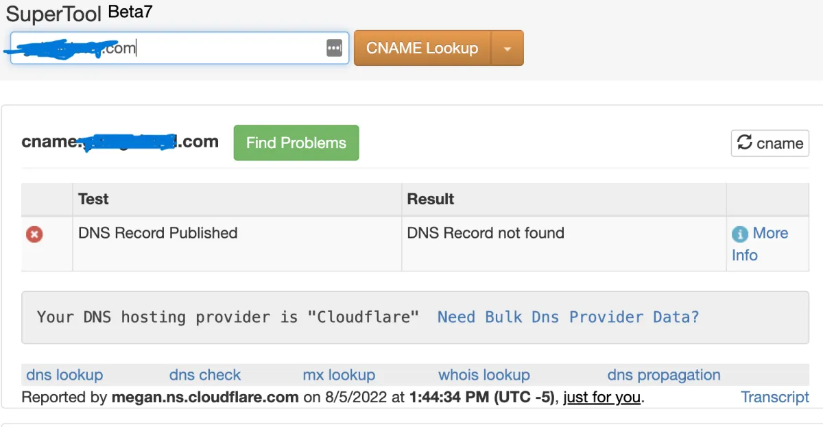 Sobald du die Domain nachschlägst, sollte angezeigt werden, wer dein DNS-Hosting-Anbieter ist.