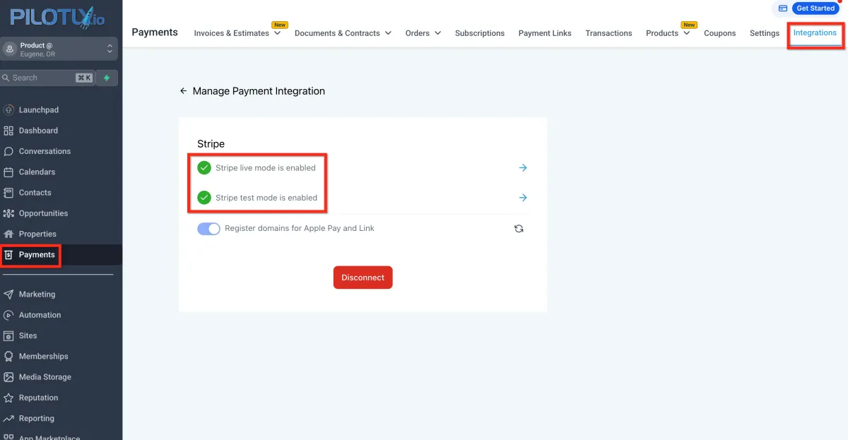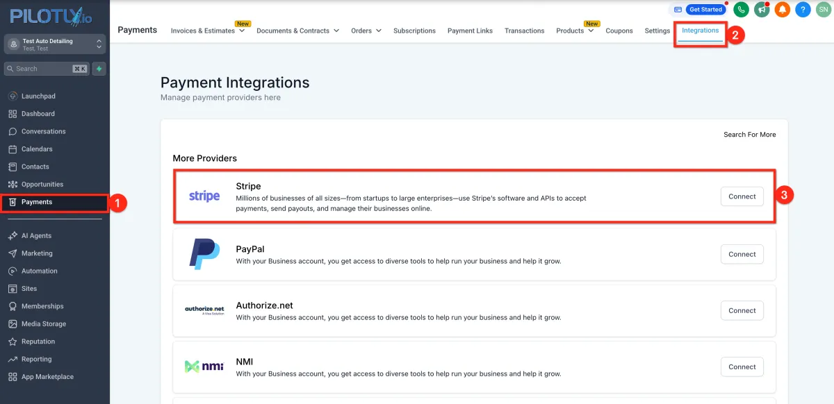 Erfahren Sie, wie Sie Stripe in Ihr Unterkonto integrieren.