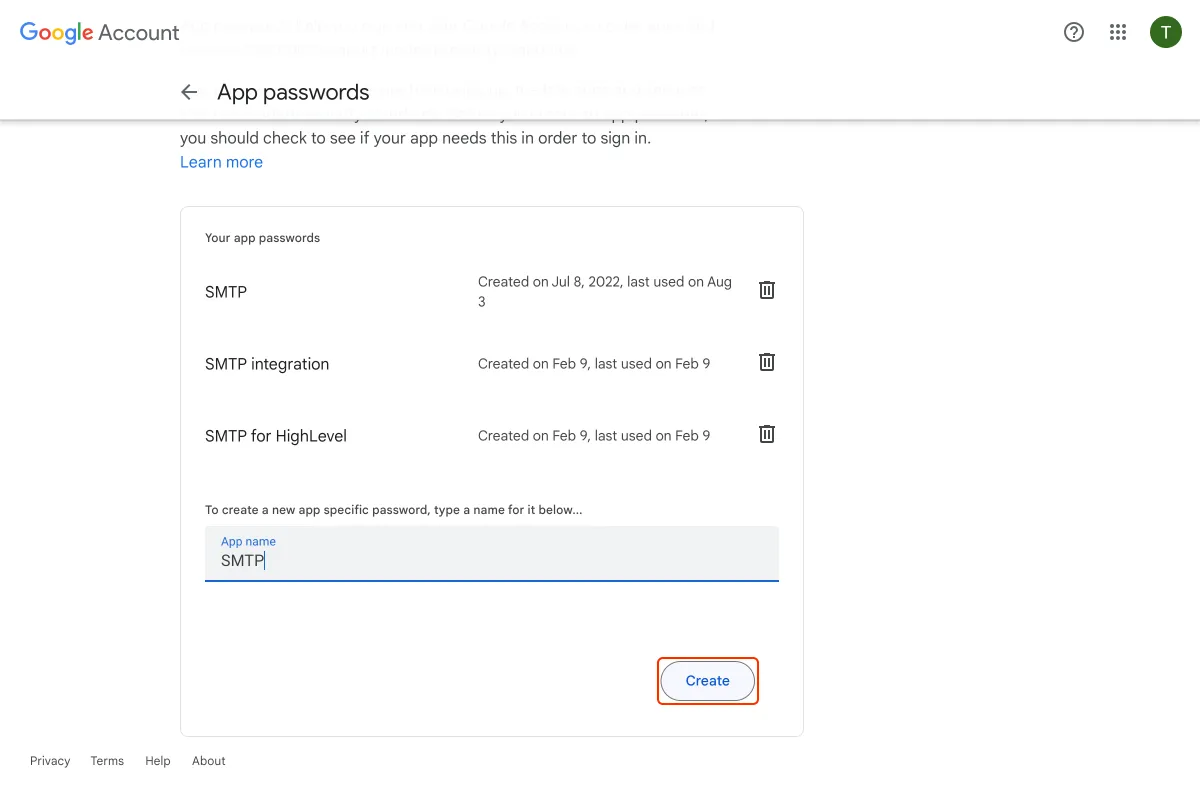 10. Ziehen Sie, um das App-Passwort zu kopieren, und fügen Sie es als Passwort ein, wenn Sie die Integration von Gmail SMTP durchführen.