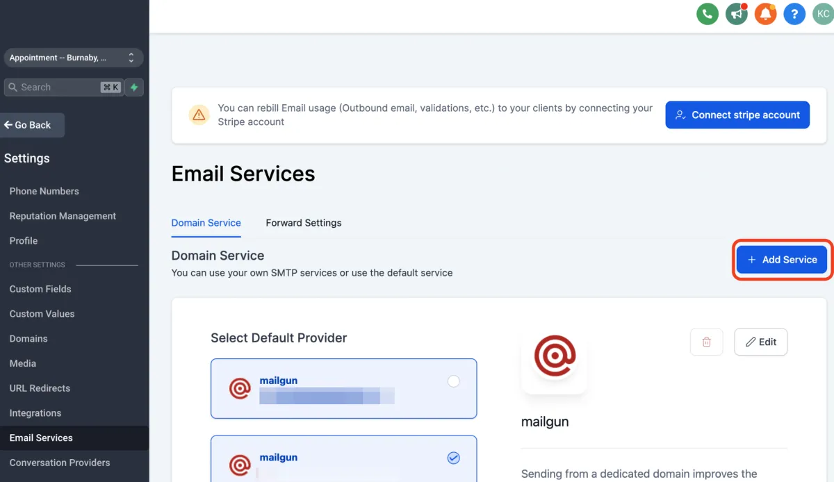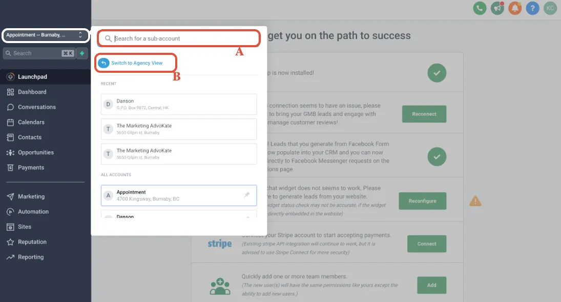 12. A.Suchen Sie nach einem Unterkonto, wenn Sie Gmail SMTP für einen Standort integrieren möchten. Sobald Sie im Unterkonto sind…