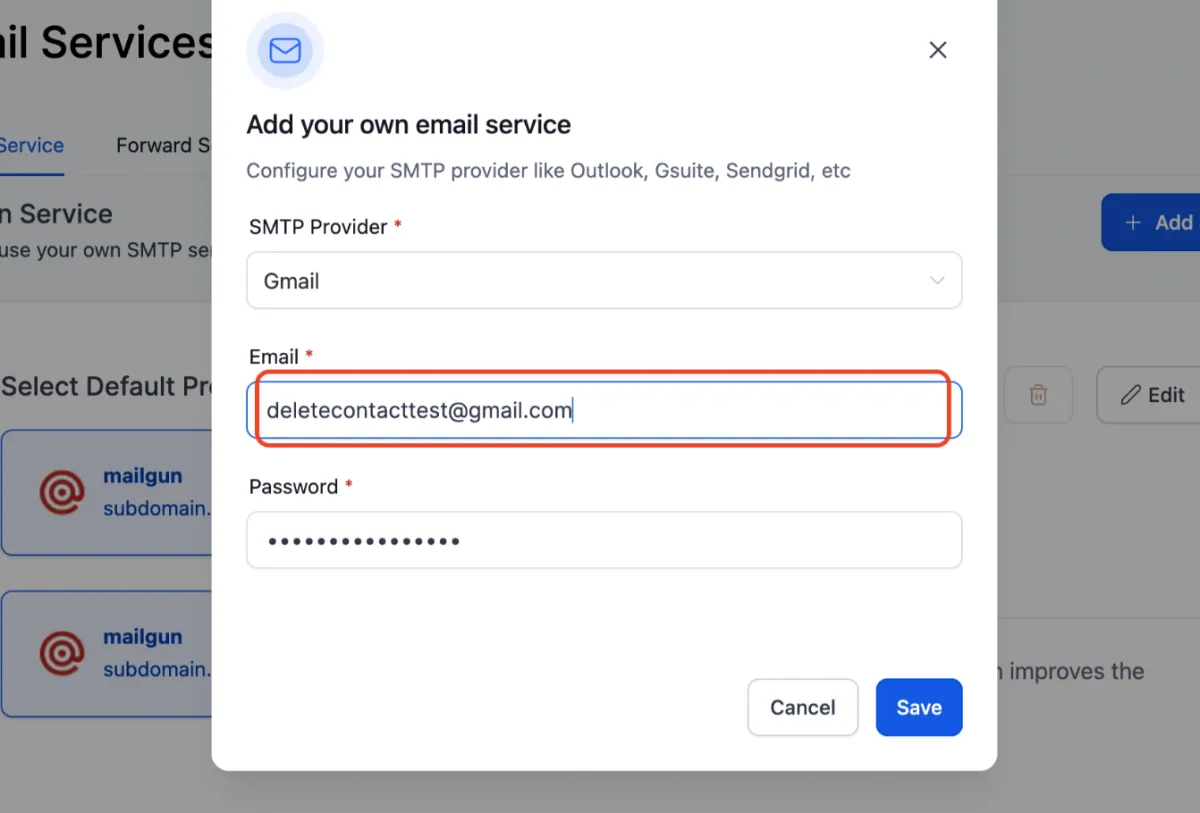 15. Klicken Sie auf das Dropdown-Menü, um den Anbieter auszuwählen > Gmail auszuwählen