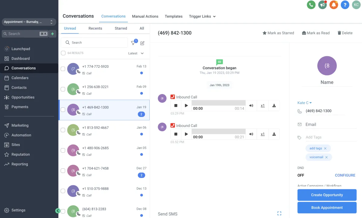 Sie können auch auf den Kontakt-Namen klicken, um die Aufnahmen auf der Konversationsseite anzuhören.