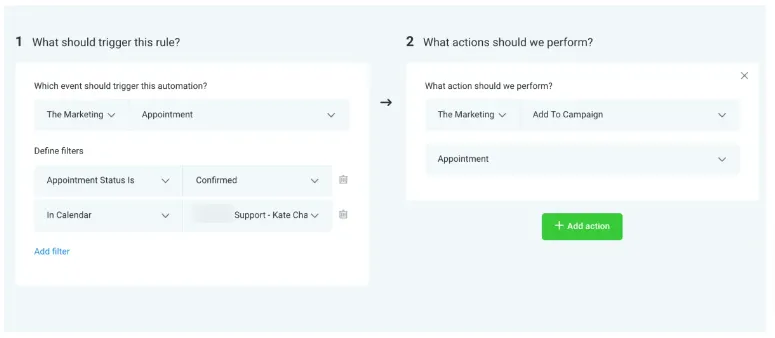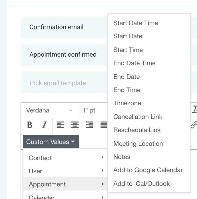 Wenn Sie möchten, dass Ihre Leads sich selbst umplanen können, können Sie die Option wählen Link neu planen. aus den benutzerdefinierten Werten in der Terminerinnerung Kampagne: