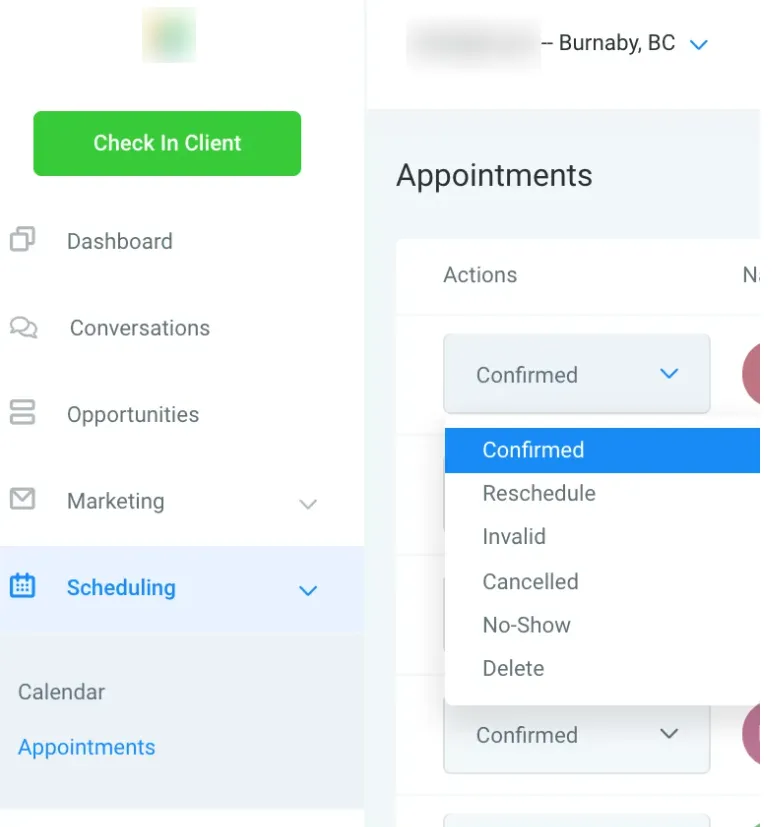 Um manuell umzuplanen, könnten Sie zu dem gehen Termine Reiter auf der rechten Seite öffnen und wechseln Bestätigt, um neu zu terminieren.. Dies automatisiert den Prozess des Entfernens der Leads aus der ursprünglichen Terminerinnerung Kampagne und fügt sie erneut der Terminerinnerung Kampagne mit der neuen Termin Zeit hinzu.
