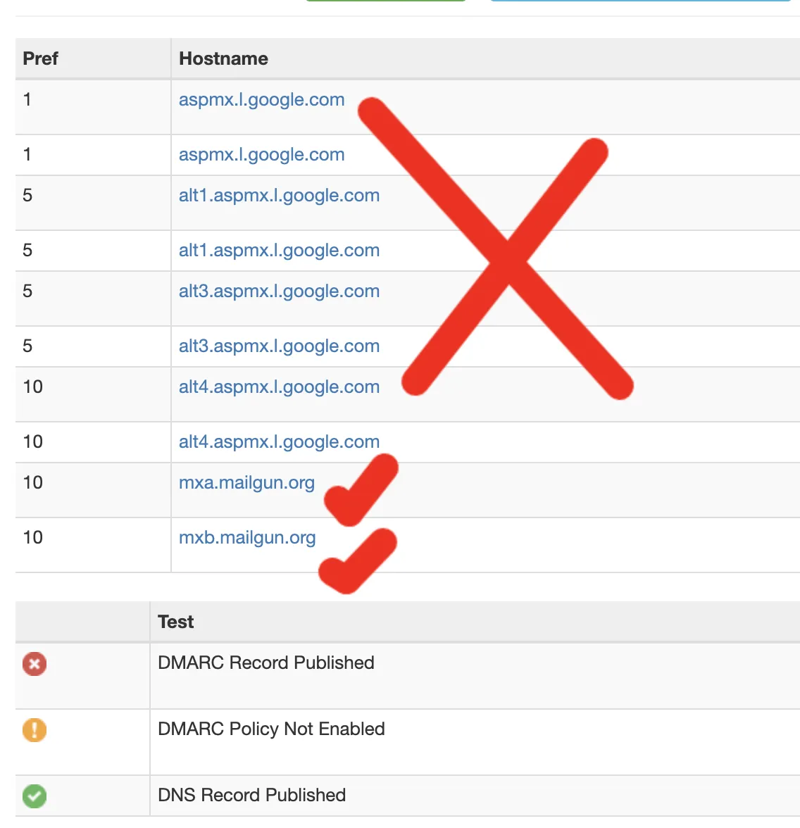 um zu sehen, ob zwei Datensätze auf mxa.mailgun.org und mxb.mailgun.org verweisen.