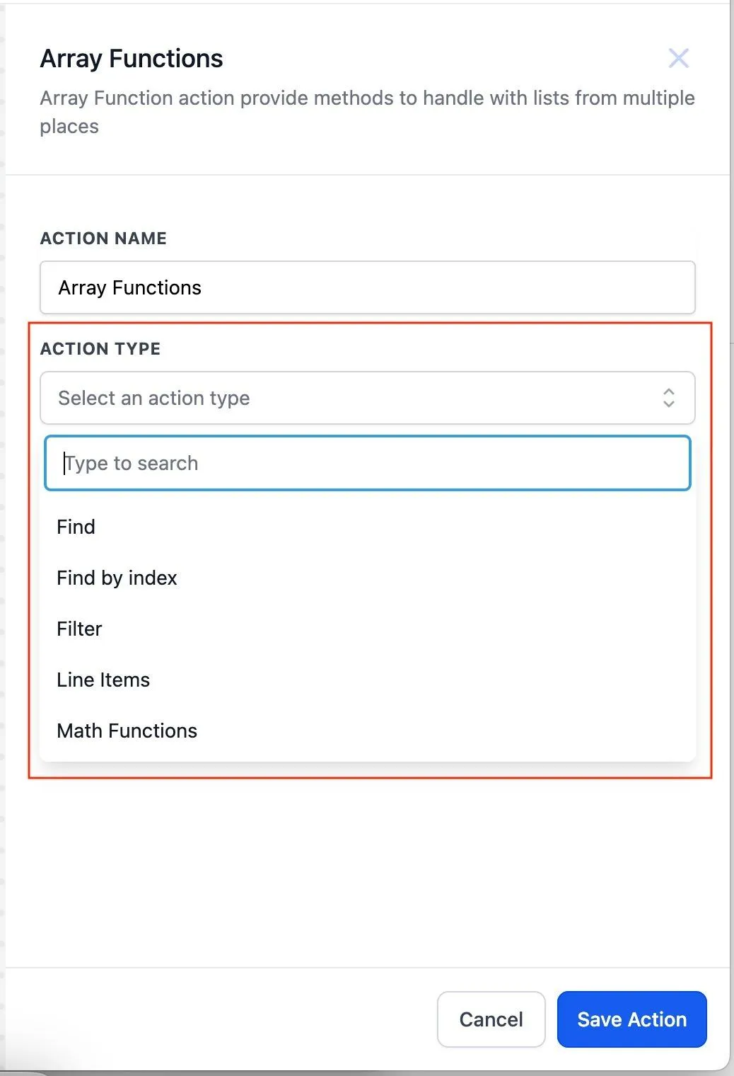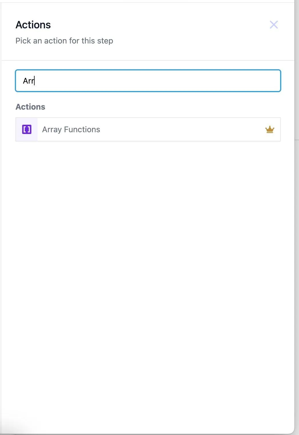 Array-Funktionen sind eine Premium-Aktion in der Workflow-Automatisierung, die speziell dafür entwickelt wurde, mit Array-Daten umzugehen. Diese Funktionalität ist sehr nützlich für komplexe Workflows, die Arrays involvieren.