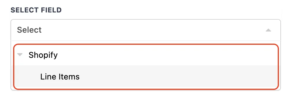 Alle Felder mit dem Datentyp Array, die im Workflow verfügbar sind, werden hier aufgelistet. Die Liste der verfügbaren Array-Daten wird aus den Shopify Triggers, dem Inbound Webhook Trigger und den Antwortdaten der benutzerdefinierten Webhook-Aktion gesammelt.