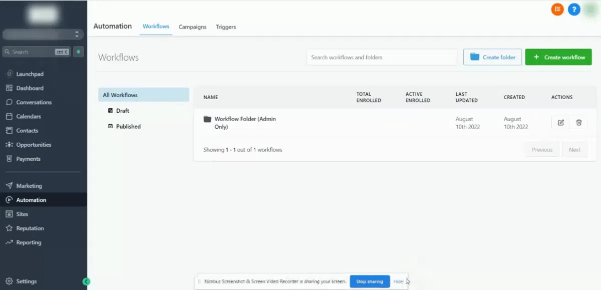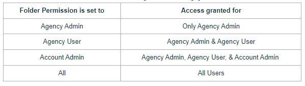 With folder permissions users without access, won't be able to see, create and edit any workflows within that folder. So, if the folder permissions are set to agency admin, then only users with the agency admin role can see, create and edit workflows.